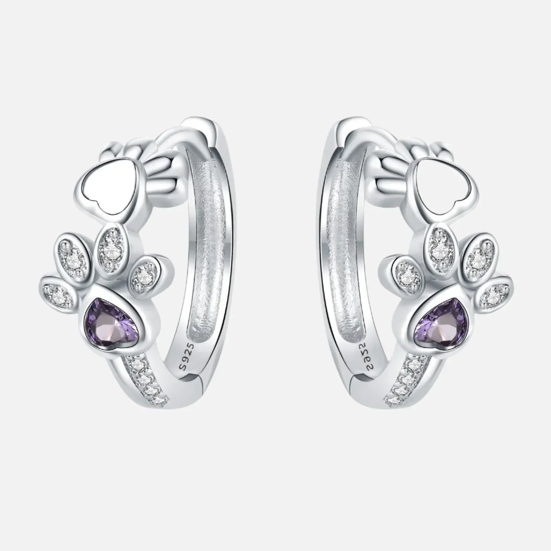 Boucles d'oreilles Paw Huggie en argent avec zirconiums et gemme en forme de cœur